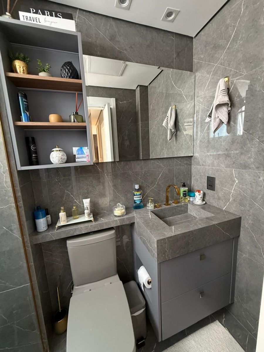 • Banheiros com revestimentos sofisticados e metais de primeira linha